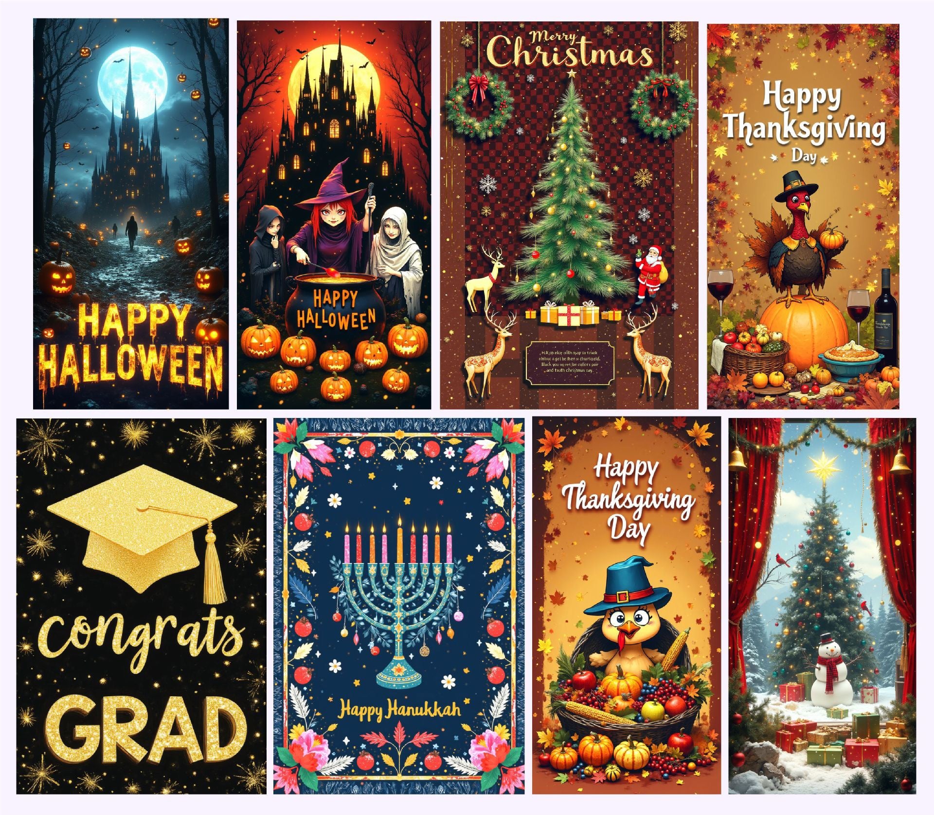 Glowing jack-o’-lanterns grin mischievously, as if whispering spooky spells, while ghosts and bats add thrilling details. Every element is carefully designed with rich details that transport you straight into a whimsical Halloween world—captivating for both kids and adults alike.