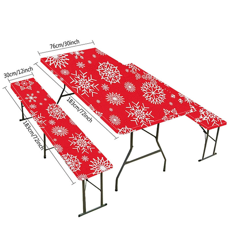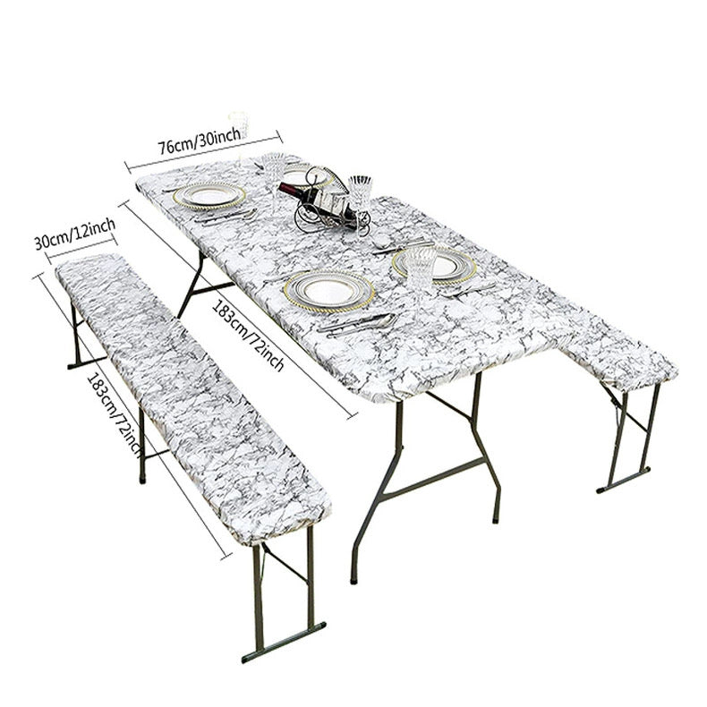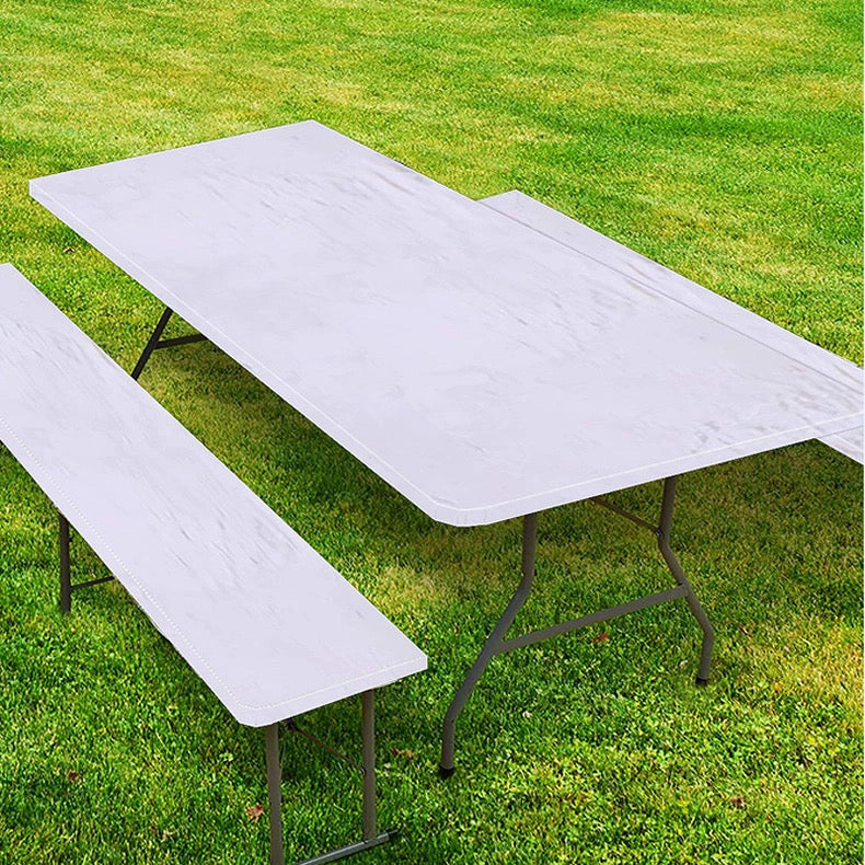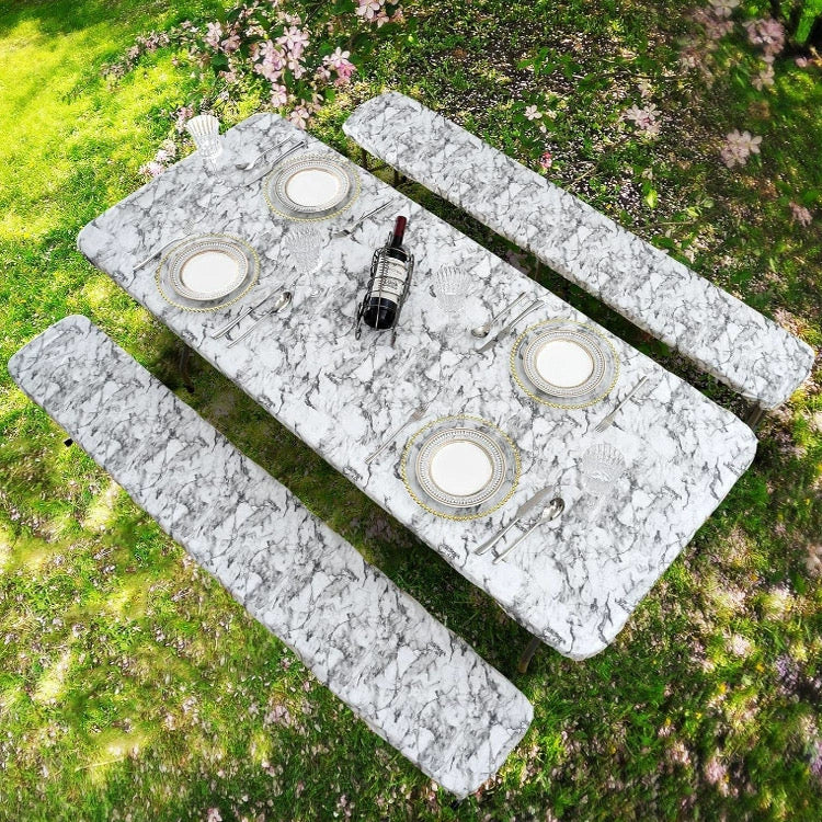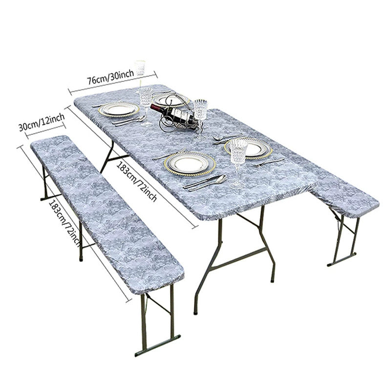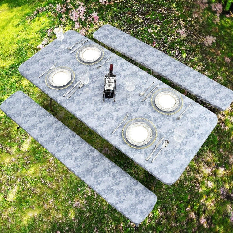 PVC Elastic Tablecloth Set, Waterproof & Oil-Proof Checkered Print, 3-Piece Outdoor Set