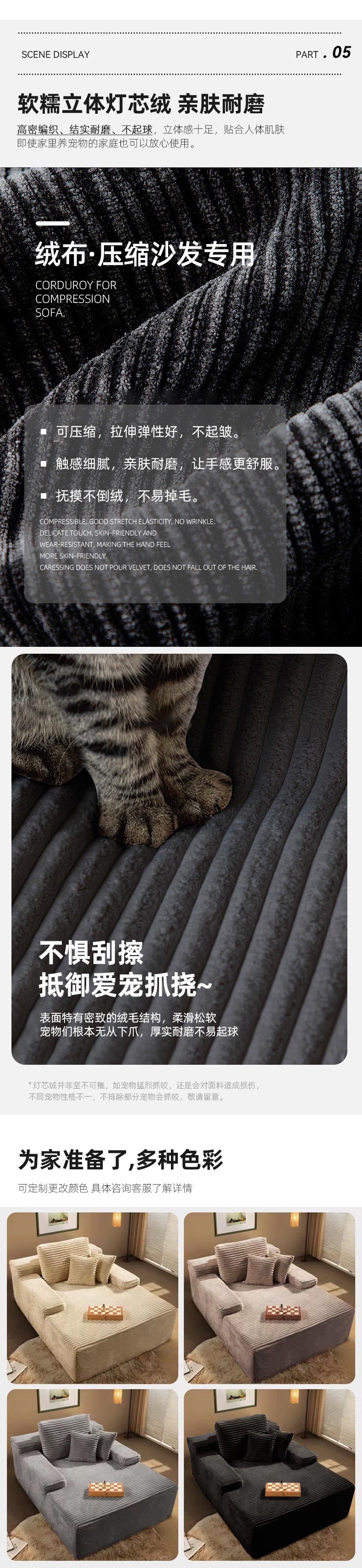 This vacuum-compressed recliner sofa features a sleek, minimalist design that effortlessly fits into any home décor style. Upholstered in soft, skin-friendly corduroy fabric, it offers a warm, cozy embrace. The corduroy texture adds visual depth and elevates the sofa’s overall premium look.